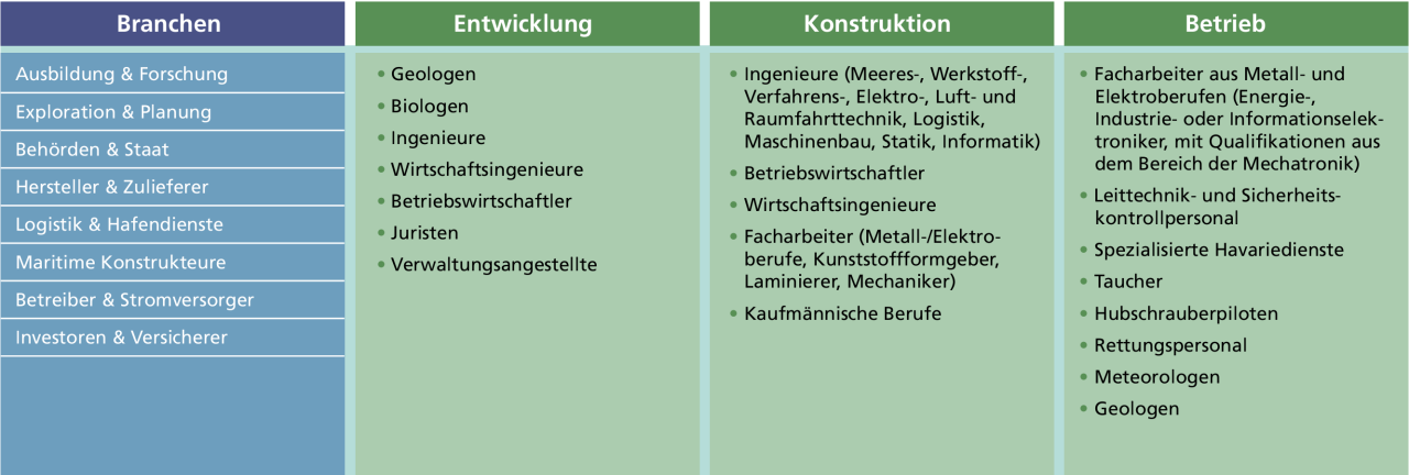 Dafür entstehen zunehmend Arbeitsplätze für den Betrieb und die Wartung einer steigenden Anzahl von Windenergieanlagen auf See.