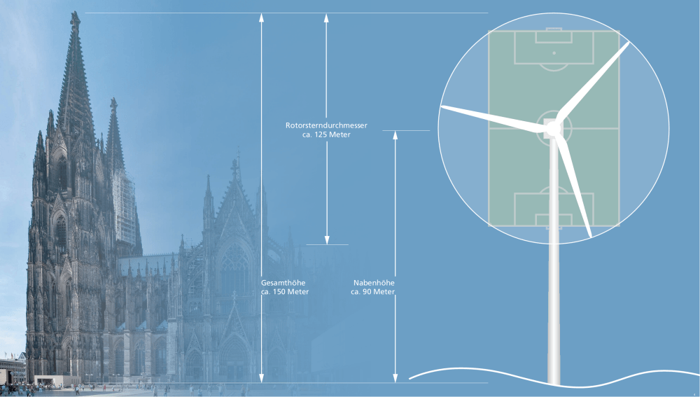 Der erste Schritt ist die Übertragung der Windbewegung in die Bewegung der Rotorblätter. Dabei wird dem Wind ein Teil seiner Geschwindigkeit entzogen und der Rotor gerät in Drehung.